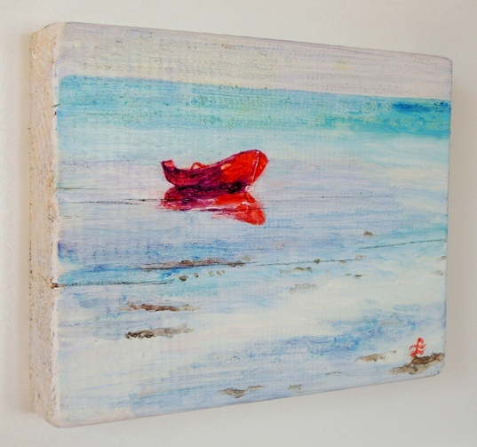 24 Drewniany Obrazek Pocztówka - Łódka