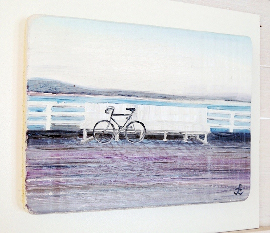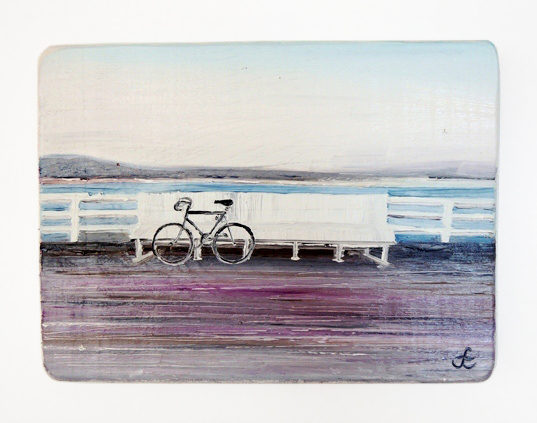 29 Drewniany Obrazek Pocztówka - Rower na Molo