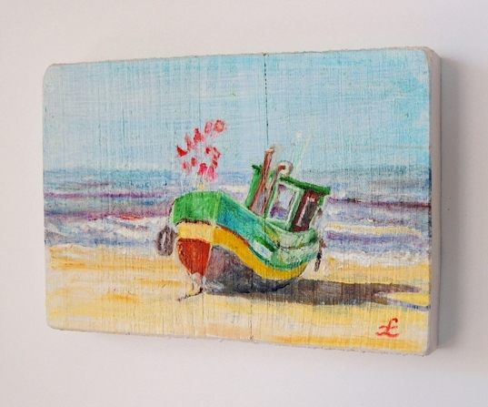 36 Drewniany Obrazek Pocztówka - Kuter Rybacki