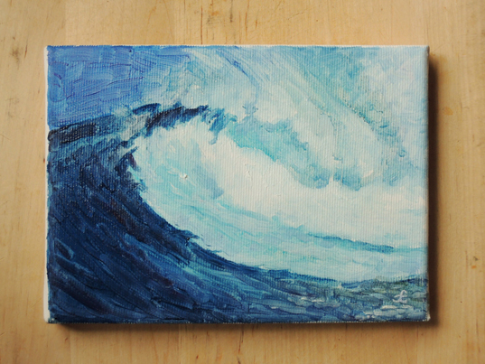 Obrazek olejny namalowany na drewnie sosnowym. Piękna, widoczna faktura nałożonej farby.