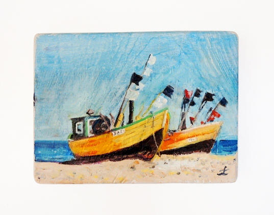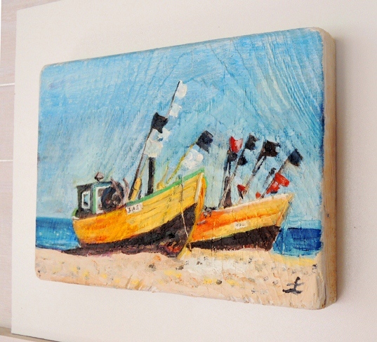 44 Drewniany Obrazek Pocztówka - Kutry Rybackie