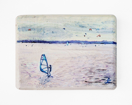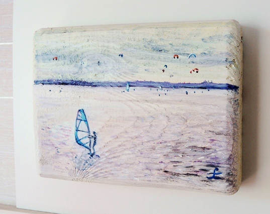 Każdy kawałek drewna został starannie oszlifowany i wykończony ręcznie, a następnie zagruntowany, tak aby mógł posłużyć za podkład obrazu.
