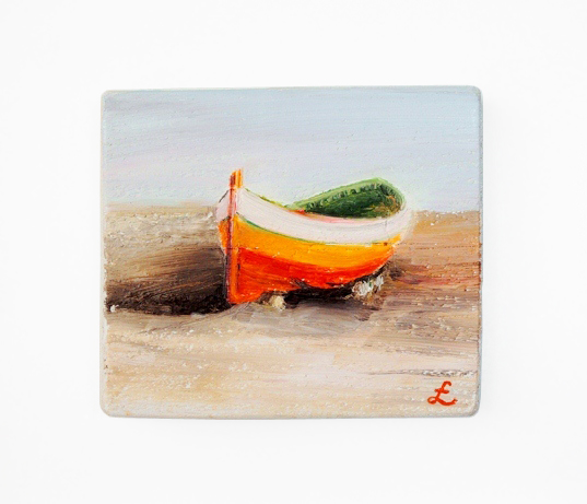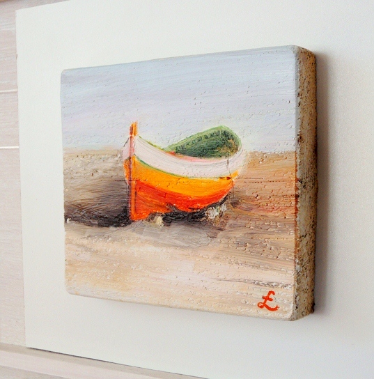 55 Drewniany Obrazek Pocztówka - Łódka na Plaży