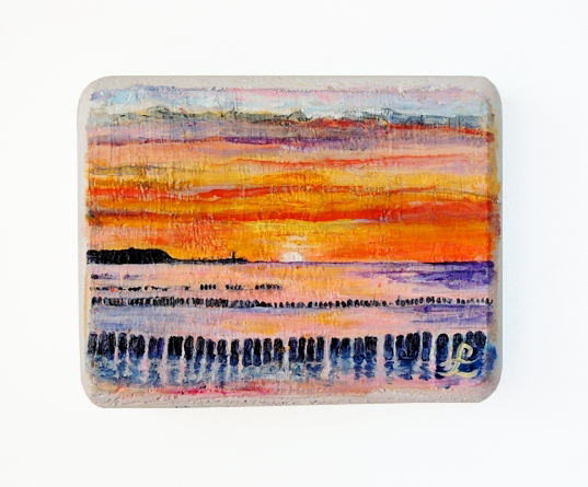 57 Drewniany Obrazek Pocztówka - Zachód Słońca