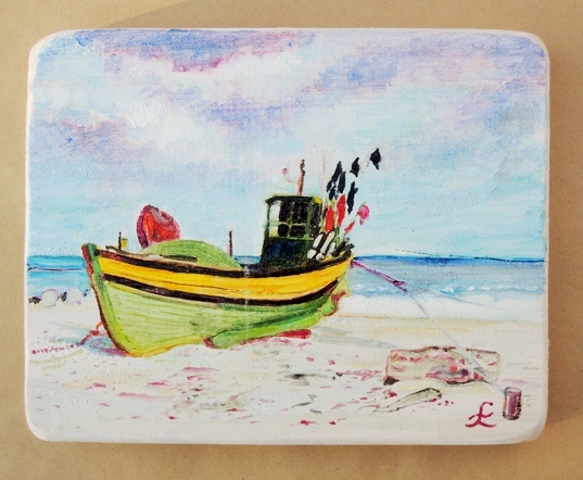 59 Drewniany Obrazek Pocztówka - Kuter Rybacki