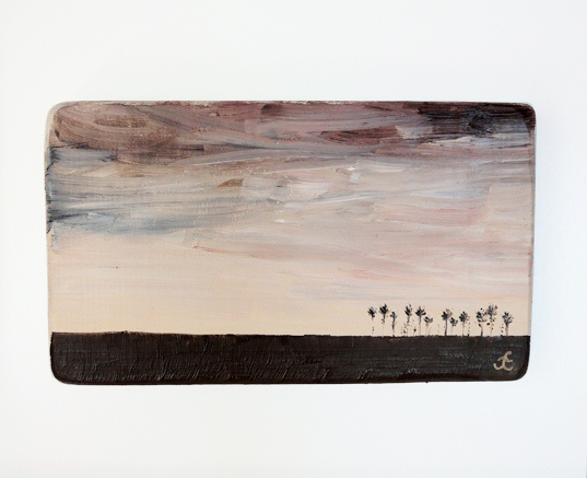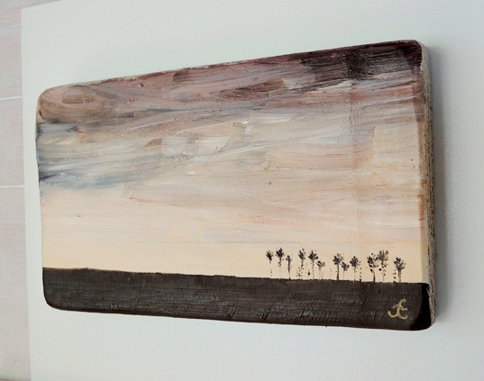 Obrazek olejny namalowany na drewnie sosnowym.