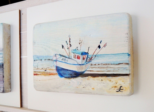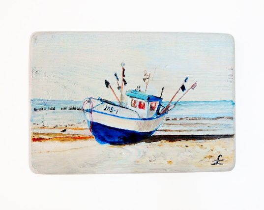 11 Drewniany Obrazek Pocztówka - Kuter Rybacki