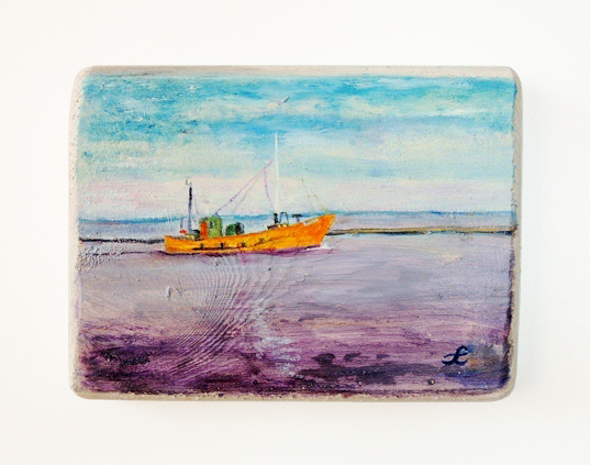 Obrazek olejny namalowany na drewnie sosnowym.