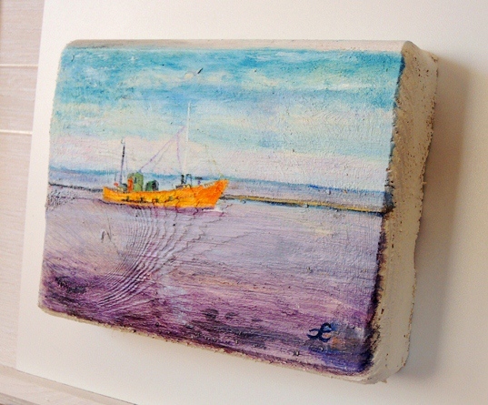 73 Drewniany Obrazek Pocztówka - Statek na Morzu