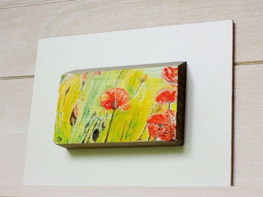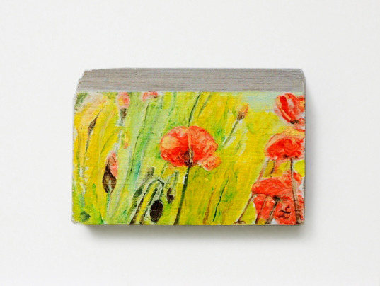 Każdy kawałek drewna został starannie oszlifowany i wykończony ręcznie, a następnie zagruntowany, tak aby mógł posłużyć za podkład obrazu.