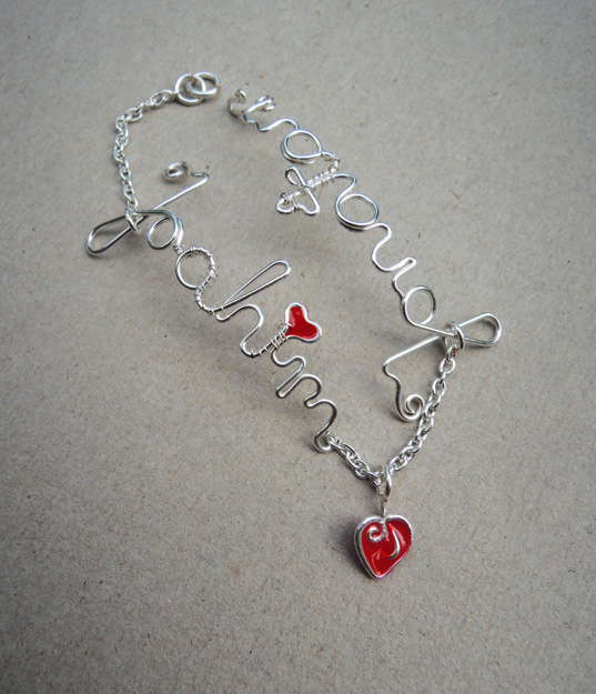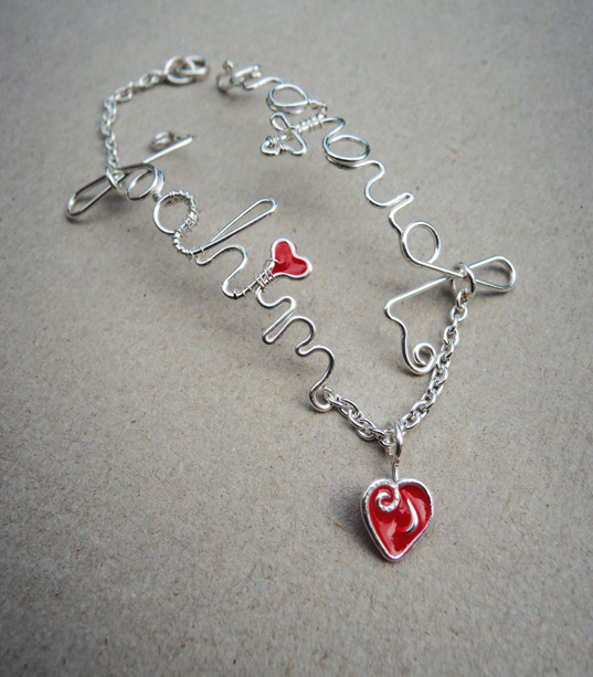 Istnieje możliwość wykonania tego wzoru w innym rozmiarze i kolorze, w formie innego rodzaju biżuterii, a także wyboru innego napisu do realizacji w tej technice.