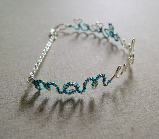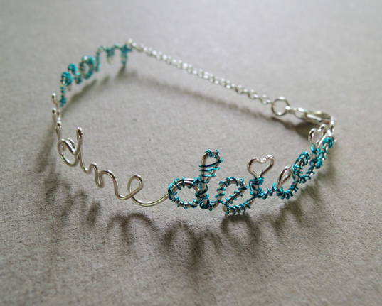 Istnieje możliwość wykonania tego wzoru w innym rozmiarze i kolorze, w formie innego rodzaju biżuterii, a także wyboru innego napisu do realizacji w tej technice.