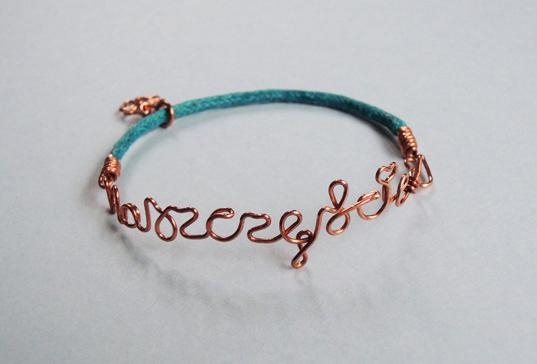 Istnieje możliwość wykonania tego wzoru w innym rozmiarze i kolorze, w formie innego rodzaju biżuterii, a także wyboru innego napisu do realizacji w tej technice.