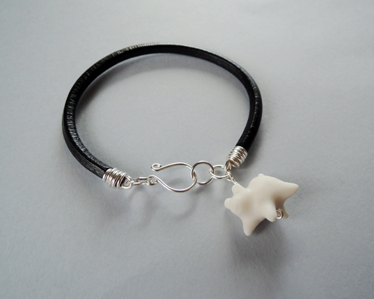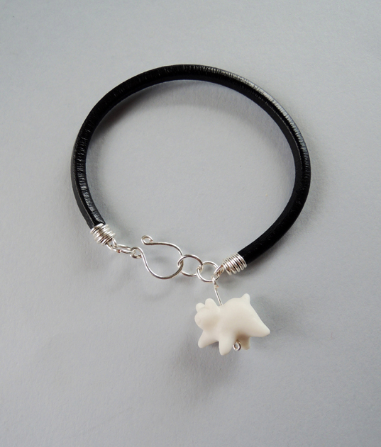 Unikatowa biżuteria wykonana od podstaw ręcznie ze skórzanego rzemienia w naturalnym kolorze oraz najwyższej jakości śnieżnobiałej porcelany, wypalonej w 1280 stopni, nieszkliwionej, co nadaje figurce elegancką matową fakturę. Po wypaleniu porcelana staje się bardzo twarda i trwała.