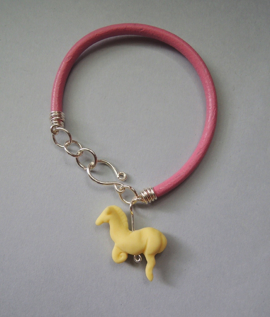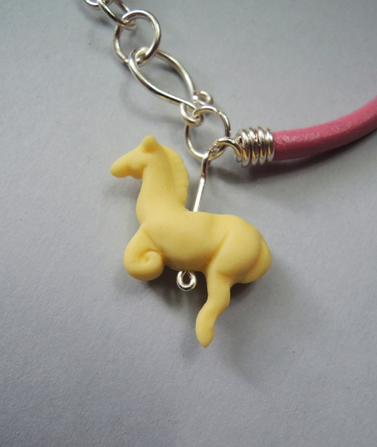 Unikatowa biżuteria wykonana od podstaw ręcznie z kolorowego sznureczka oraz najwyższej jakości śnieżnobiałej porcelany, wypalonej w 1280 stopni, nieszkliwionej, co nadaje figurce elegancką matową fakturę. Po wypaleniu porcelana staje się bardzo twarda i trwała.