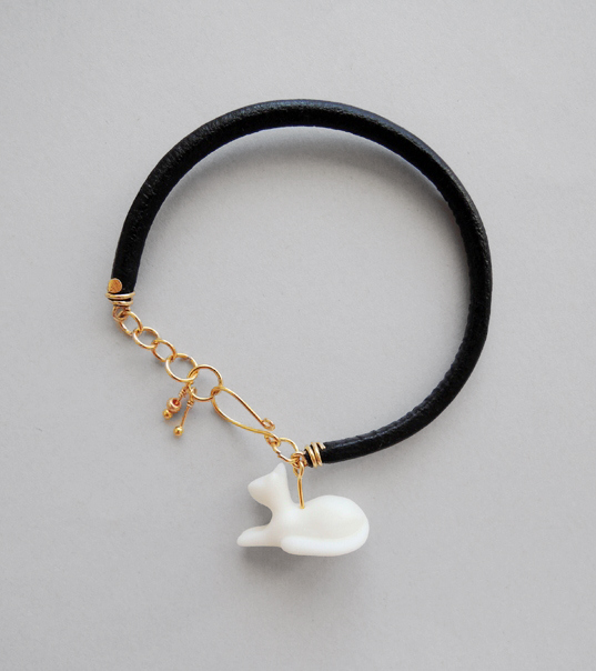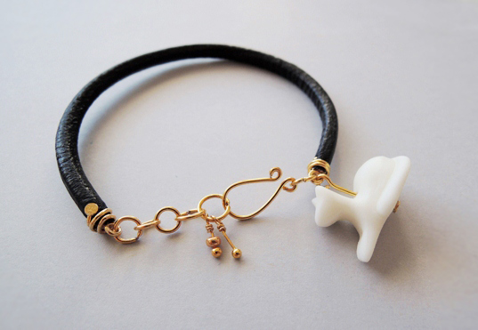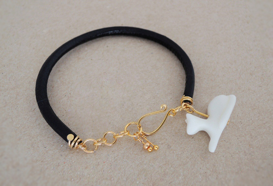 Unikatowa biżuteria wykonana od podstaw ręcznie ze skórzanego rzemienia w naturalnym kolorze oraz najwyższej jakości śnieżnobiałej porcelany, wypalonej w 1280 stopni, nieszkliwionej, co nadaje figurce elegancką matową fakturę. Po wypaleniu porcelana staje się bardzo twarda i trwała.