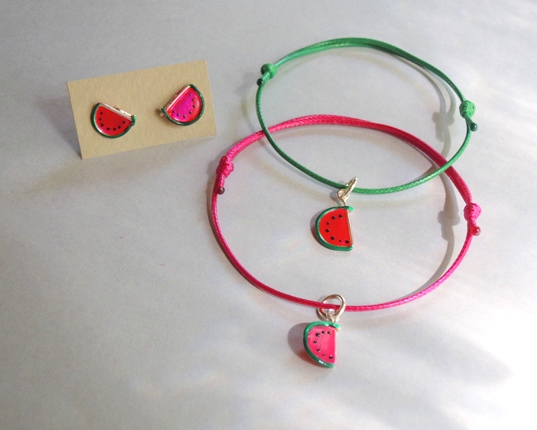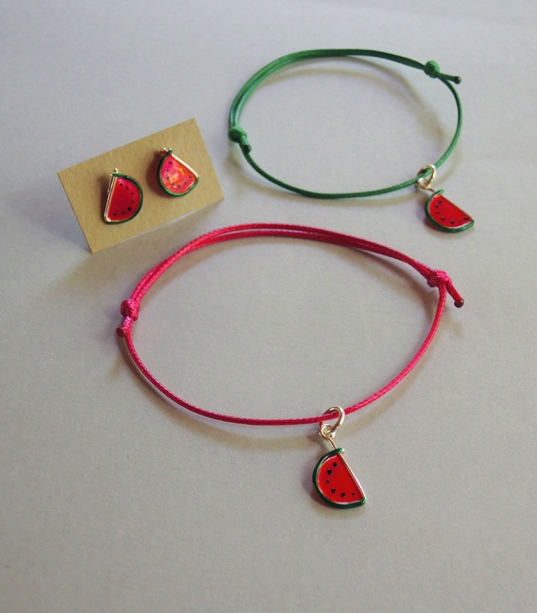 Bransoletka może stanowić komplet z kolczykami arbuzami sztyftami – klik! :) lub wiszącą wersją kolczyków arbuzów – tutaj!