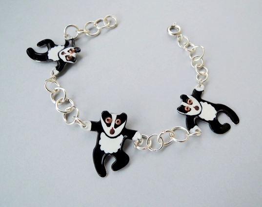 Unikatowa biżuteria wykonana od podstaw ręcznie autorską techniką łączoną z wire-wrapping. Wzór zrealizowany na specjalne zamówienie. Do kompletu została wykonana również para kolczyków z borsukami (klik).