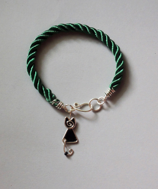Unikatowa biżuteria wykonana od podstaw ręcznie autorską techniką łączoną z wire-wrapping oraz satynowym, skręconym sznurkiem.