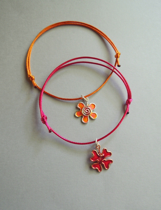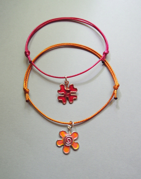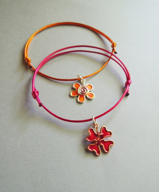 Bransoletki są zaskakująco lekkie, prawie niewyczuwalne podczas noszenia! Mogą stanowić komplet z kolczykami koniczynkami malinowymi lub kolczykami kwiatkami morelowymi – klik!