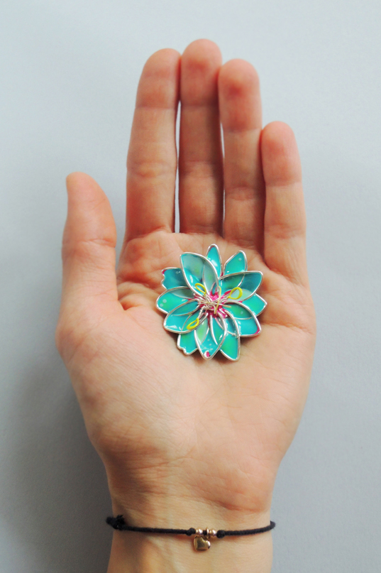 Broszka jest zaskakująco lekka, prawie niewyczuwalna podczas noszenia.
