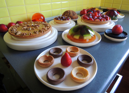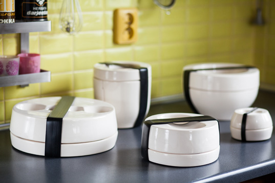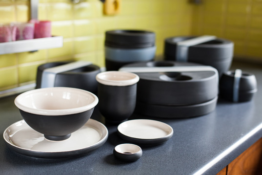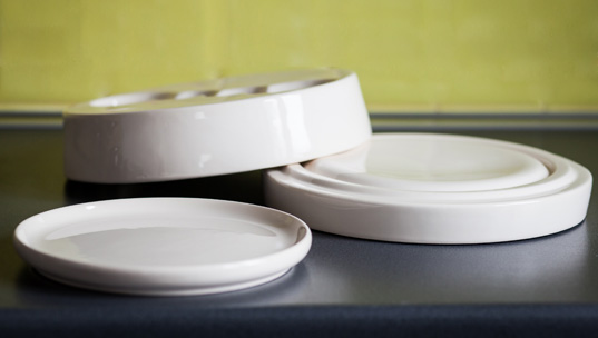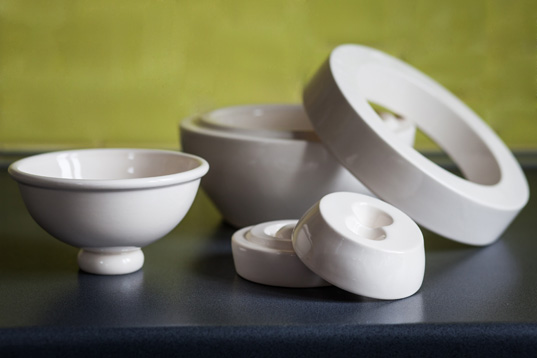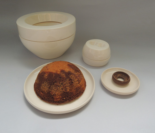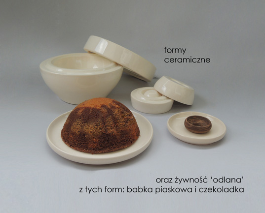Formy w nowym, ceramicznym wcieleniu okazały się bardzo funkcjonalne w kuchni; Podobnie jak masa ceramiczna w pracowni ceramiki, przy odlewaniu żywności idealne okazały się produkty spożywcze, które są płynne, a po obróbce termicznej przechodzą w stan stały, czyli wszelkiego rodzaju ciasta, galaretki, lody, budynie, czekolady. W przeciwieństwie do form gipsowych formy ceramiczne charakteryzują się tym, że posiadają pustą przestrzeń wewnątrz grubości ścian, co pozwala na swobodny przepływ temperatury wewnątrz formy podczas pieczenia w niej ciasta czy mrożenia galaretki. Przy wyjmowaniu z form żywności schłodzonej przestrzeń ta pozwala również na odwrócenie formy i wlanie do wewnątrz gorącej wody, co bardzo ułatwia wyjęcie z formy np. galaretki. „Odlewy” z żywności dzięki prostym bryłom naczyń z zestawu śniadaniowego, stanowią odrębne obiekty, takie jak babka piaskowa czy baza z kruchego ciasta pod tartę. Żywność odlana z form ceramicznych może być podawana na naczyniach z zestawu śniadaniowego lub formach ceramicznych. Poszczególne części kompletu form znajdują swoje zastosowanie nie tylko w odlewaniu żywności; obręcze form ‘na miskę’ lub ‘na kubek’ są doskonałymi podstawkami pod garnek, zaś dolne części od form ‘talerzowych’ mogą służyć jako patery pod ciastka, owoce itp.