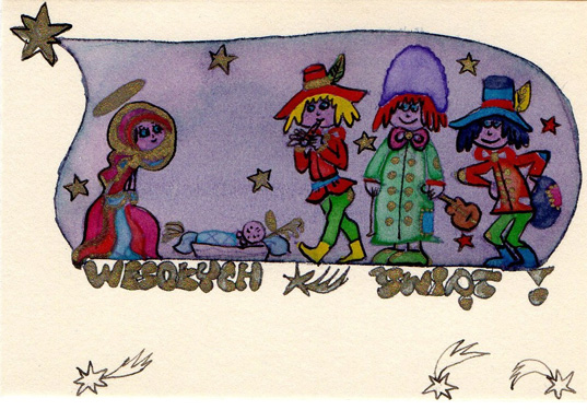 Urocze kartki świąteczne namalowane piórem i akwarelami przez moją mamę, Joasię Łukaszewicz. Kolekcja historyczna – stworzona w latach 70, kiedy moja mama miała 20-kilka lat :)