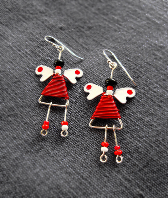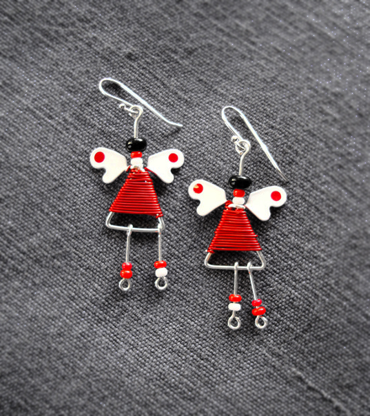 Kolczyki Aniołki Czerwono Białe
