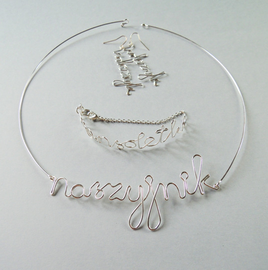 Istnieje możliwość wykonania tego wzoru w innym rozmiarze i kolorze, w formie innego rodzaju biżuterii, a także wyboru innego słowa lub słów do realizacji w tej technice.