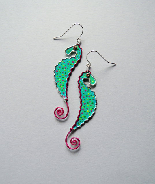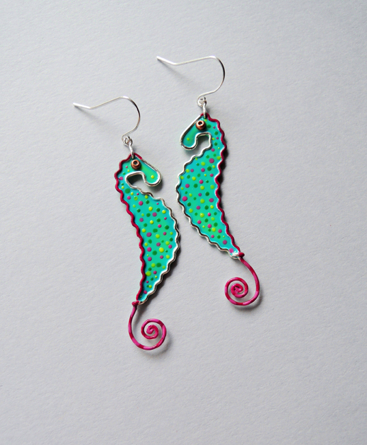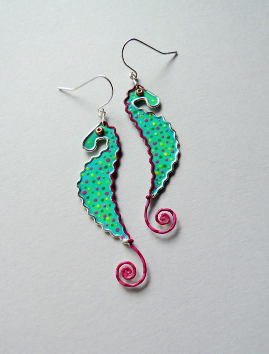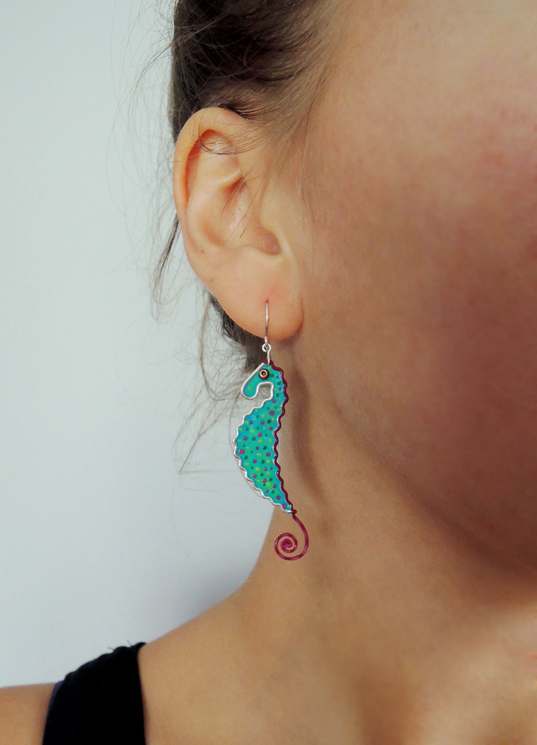 Kolczyki są zaskakująco lekkie, prawie niewyczuwalne podczas noszenia. Mogą stanowić komplet z zawieszką konikiem morskim w kropki – klik! :)