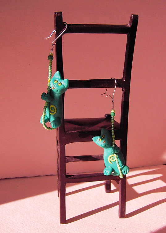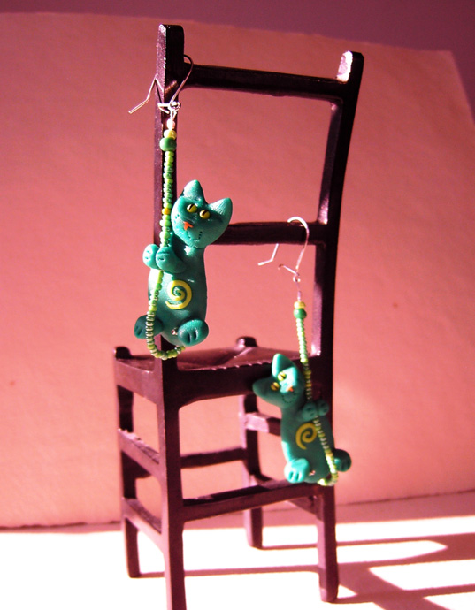 Kolczyki Kotki Fimo Zielone
