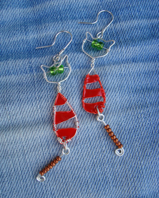 Kolczyki Kotki w Paski Pomarańczowe
