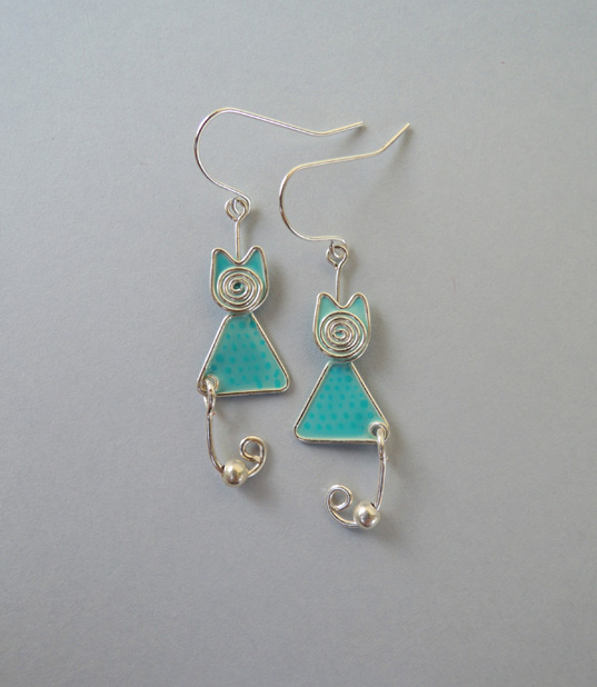 Kolczyki Kotki Zakręcone Błękitne w Kropki