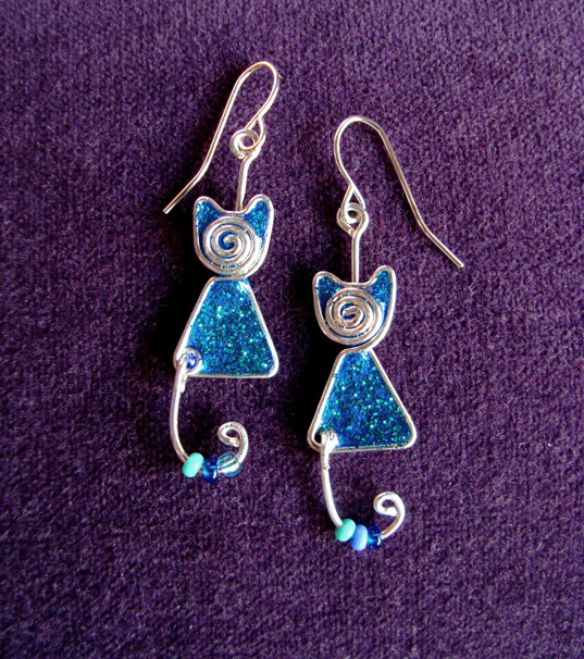 Kolczyki Kotki Zakręcone Brokat