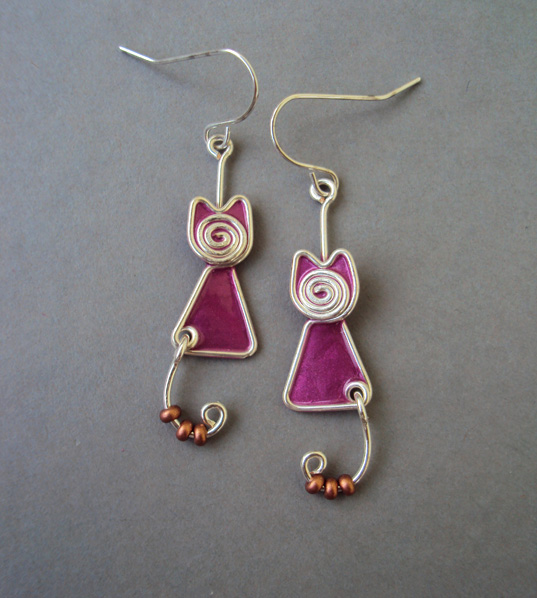 Kolczyki Kotki Zakręcone Ciemnoróżowe