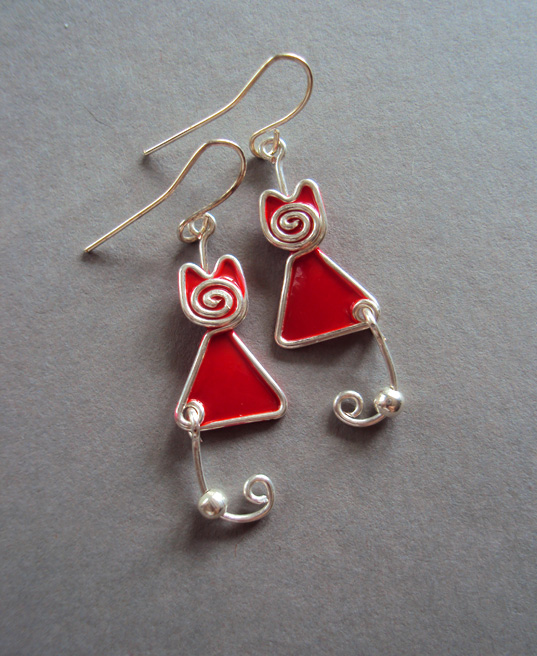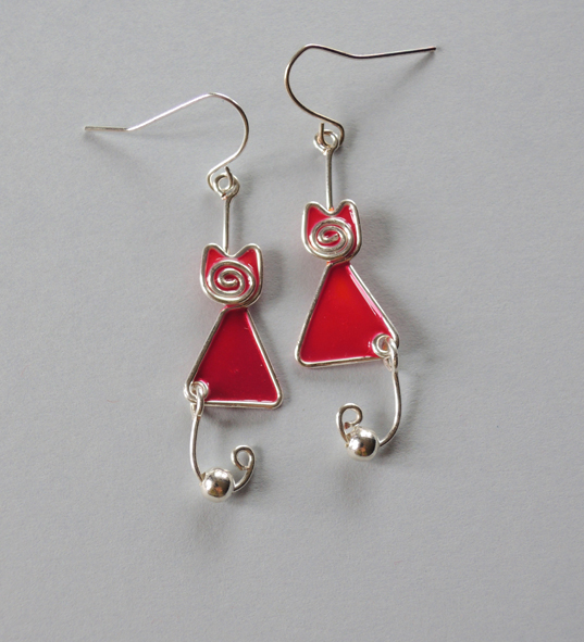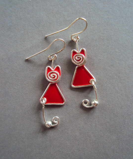 Kolczyki Kotki Zakręcone Czerwone