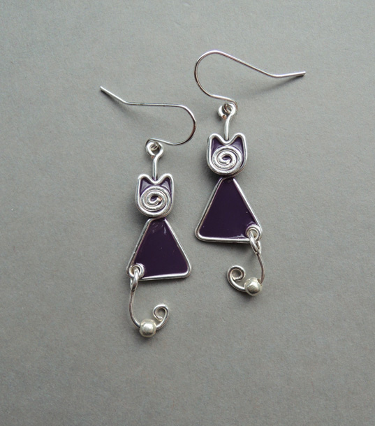 Kolczyki Kotki Zakręcone Fioletowe