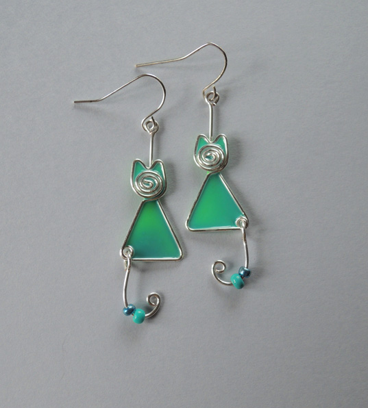 Kolczyki Kotki Zakręcone Turkusowe