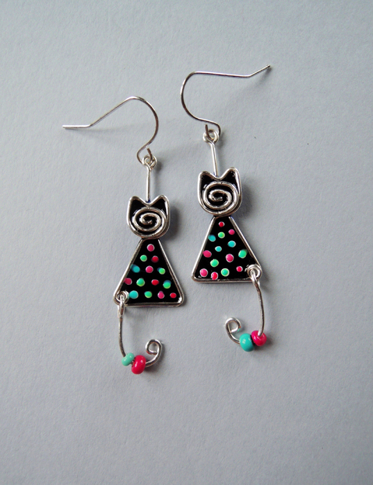 Kolczyki Koty Zakręcone w Kropki