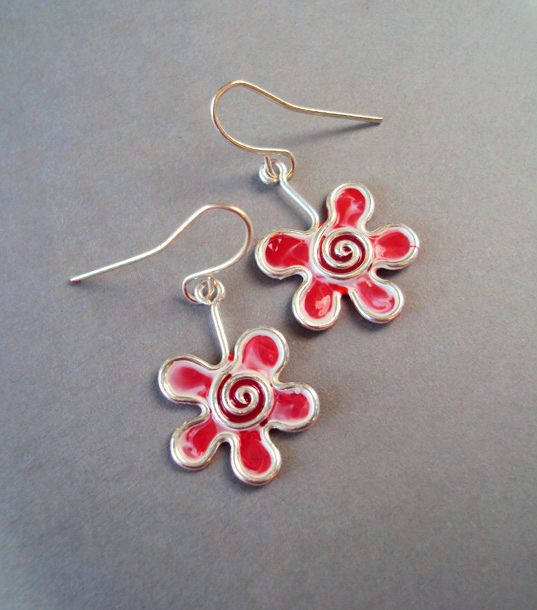 Kolczyki Kwiatki Biało Czerwone