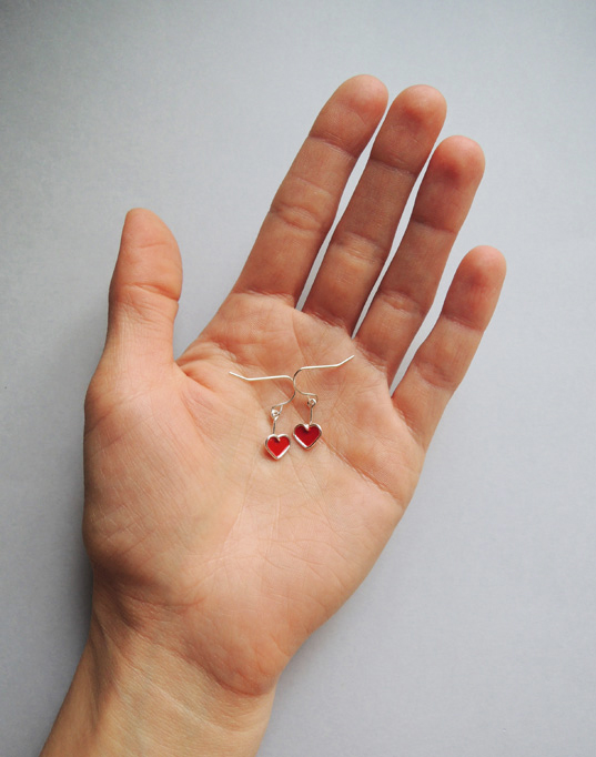 Kolczyki są zaskakująco lekkie, prawie niewyczuwalne podczas noszenia. Mogą stanowić komplet z bransoletką z mini serduszkiem – klik! :)
