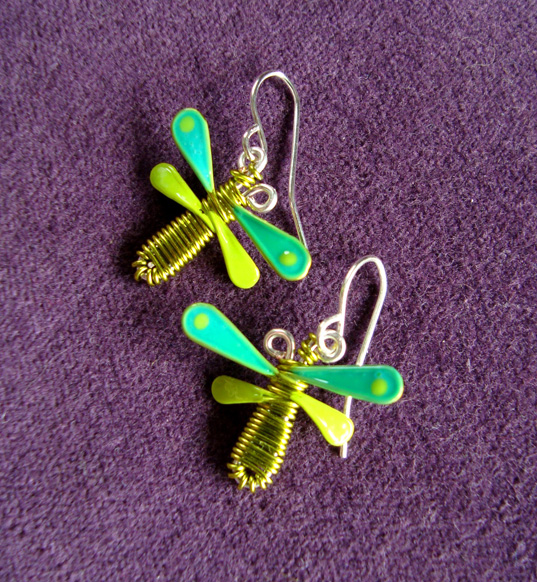 Kolczyki Mini Ważki Turkusowo Zielone