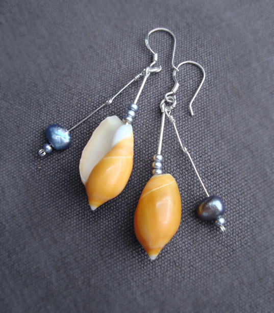 Unikatowa biżuteria wykonana od podstaw ręcznie autorską techniką łączoną z wire-wrapping.Perły naturalne, rzeczne. Muszle przywiezione z ciepłych krajów :)