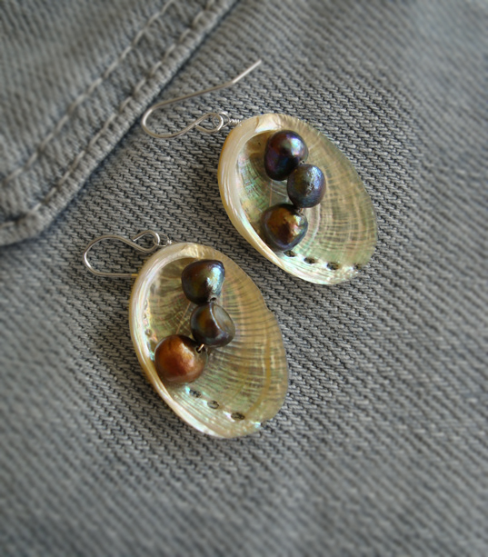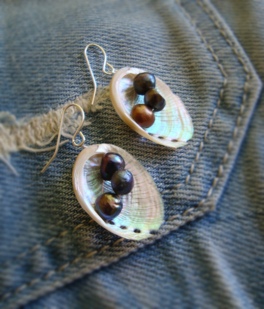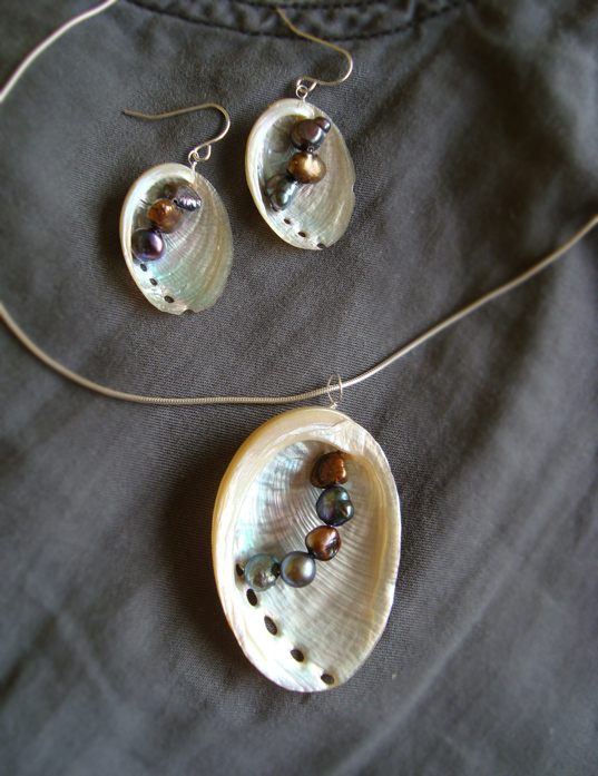 Unikatowa biżuteria wykonana od podstaw ręcznie autorską techniką łączoną z wire-wrapping.Perły naturalne, rzeczne. Muszle przywiezione z ciepłych krajów :)