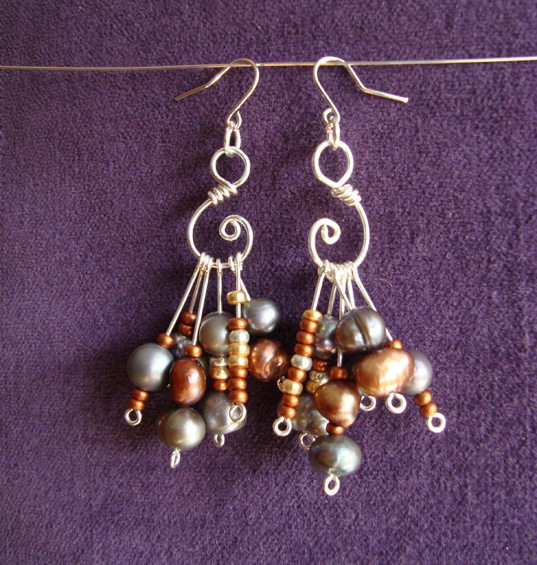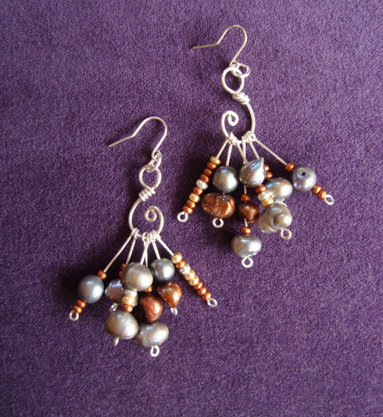 Unikatowa biżuteria wykonana od podstaw ręcznie autorską techniką łączoną z wire-wrapping.Perły naturalne, rzeczne.