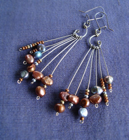 Unikatowa biżuteria wykonana od podstaw ręcznie autorską techniką łączoną z wire-wrapping.Perły naturalne, rzeczne.