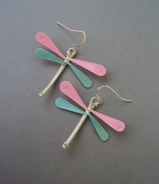 Kolczyki Ważki Różowo Miętowe