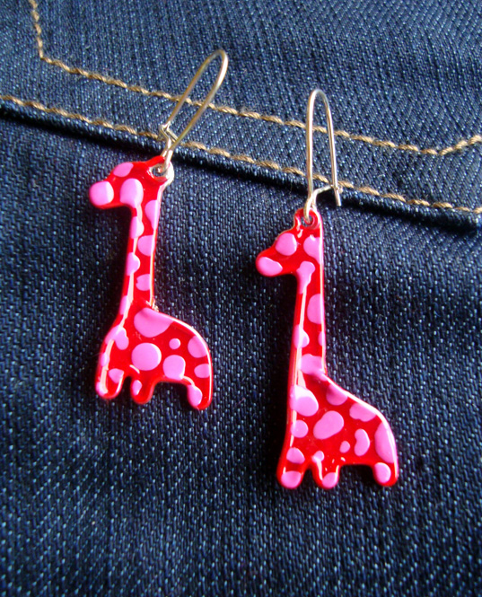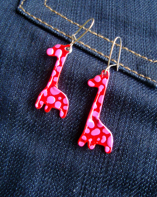 Kolczyki Żyrafy Różowo Czerwone
