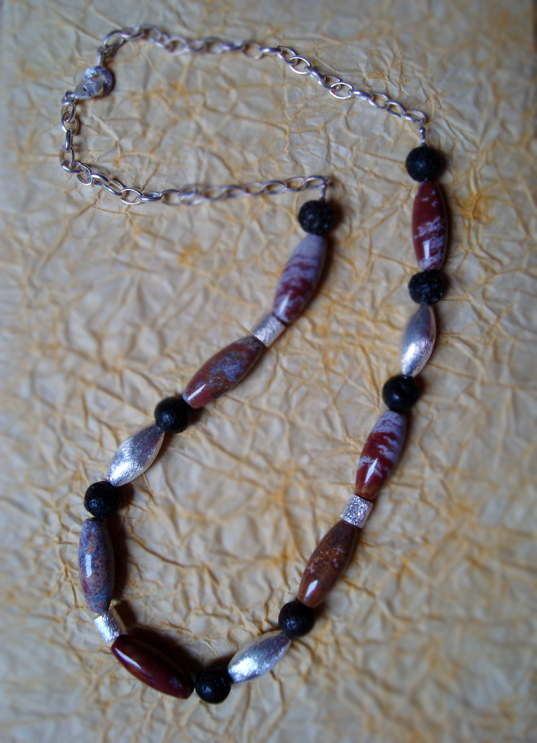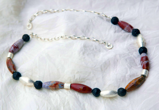 Unikatowy naszyjnik skomponowany z najwyższej jakości kamieni półszlachetnych, jaspisów i lawy oraz srebra próby 925.