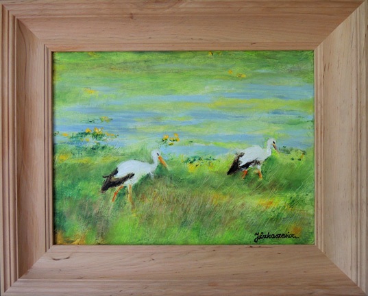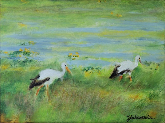 Obraz Olejny na Płótnie "Bociany"